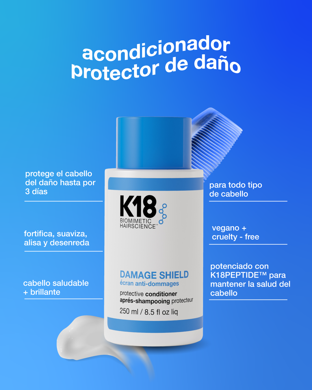 Continúa con el Acondicionador Damage Shield, para entregar protección hasta por tres