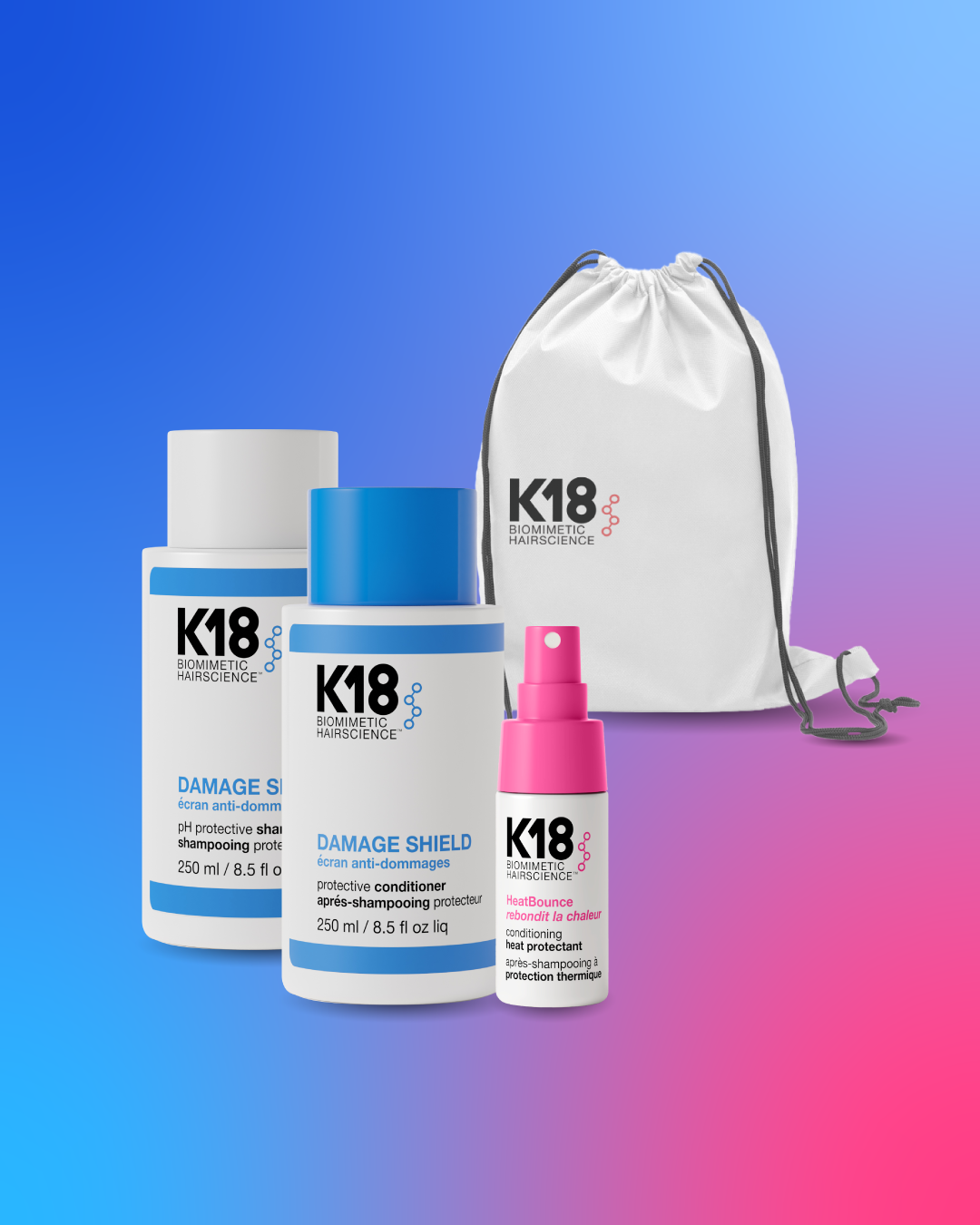 La línea DAMAGE SHIELD ofrece protección contra el daño entre los días que no utilizas la máscara K18 junto alpoder desenredante después de los servicios de salón. Gracias a sus pH optimizados trabajan como un Dream Team para mantener y proteger la salud del cabello.